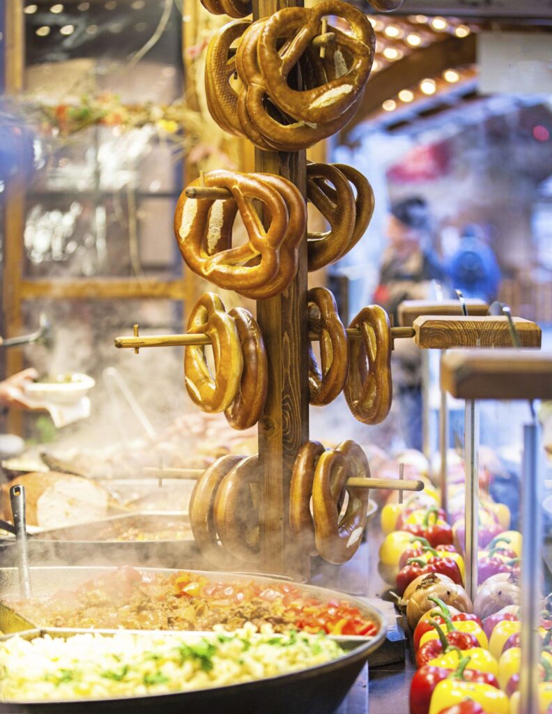 The most famous example is the Christmas market season, which runs across many European countries from late November through December. Streets fill with wooden stalls selling regional treats such as sausages, pastries, roasted nuts, mulled wine, and sweet breads.